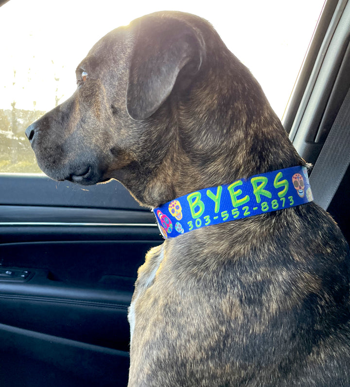 Handmade to Order. All Collars can be Personalized. Tailored Sized and Custom Dyed Webbing that makes a totally colorfast and bleachable collar that will last for years and years in the sun, the ocean, lake or pool. Can be thrown right into washing machine.