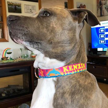 Handmade to Order. All Collars can be Personalized. Tailored Sized and Custom Dyed Webbing that makes a totally colorfast and bleachable collar that will last for years and years in the sun, the ocean, lake or pool. Can be thrown right into washing machine.