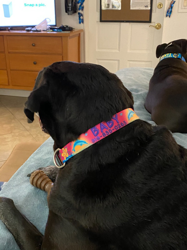 Handmade to Order. All Collars can be Personalized. Tailored Sized and Custom Dyed Webbing that makes a totally colorfast and bleachable collar that will last for years and years in the sun, the ocean, lake or pool. Can be thrown right into washing machine.