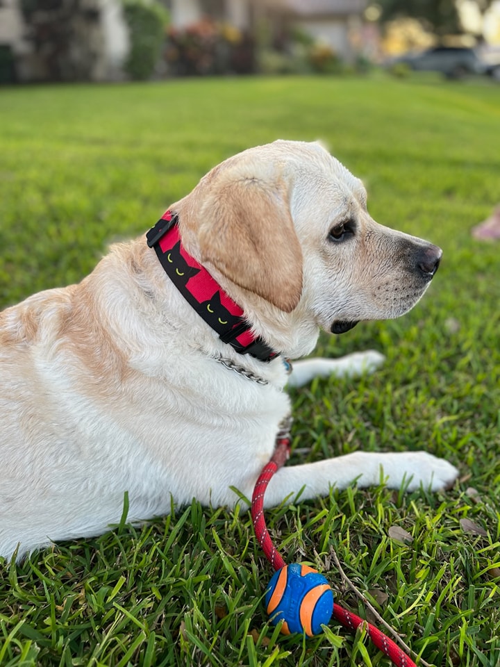 Handmade to Order.  All Collars can be Personalized.  Tailored Sized and Custom Dyed Webbing that makes a totally colorfast and bleachable collar that will last for years and years in the sun, the ocean, lake or pool.   Can be thrown right into washing machine.