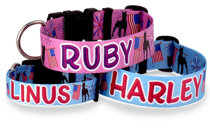 The 4th of July Parade of Paws Blue Dog Collar is a highly-recognizable USA-inspired piece. Celebrate after the parade with festive activities such as sparklers, burgers, hot dogs, Fireworks and of course beer, don't forget the beer!