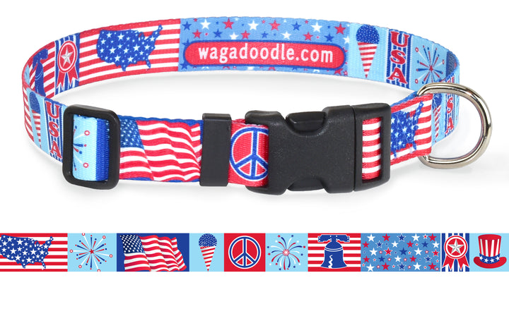 This 4th of July Red, White & Blue Picnic Dog Collar is a design celebrating how we proclaim this iconic American Tradition. as we After the parade we gather with our family, community and friends to celebrate our country with fireworks, barbecued hamburgers and hot dogs, and of course, beer, lots of beer!