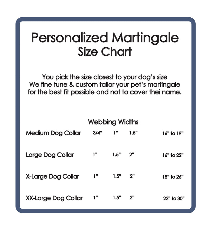 Martingale Dog Collars, no-slip security collars. Custom sized for a perfect fit. Extra wide 1.5 inch and 2 inch webbing for Sighthounds, Greyhounds, Whippets and all sized dogs. Dual double loops prevents backing out of a collar. Can be personalized.  Matching Leashes and Pet ID Tags available.