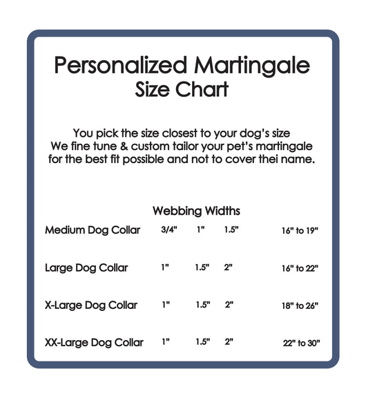 Martingale Dog Collars, no-slip security collars. Custom sized for a perfect fit. Extra wide 1.5 inch and 2 inch webbing for Sight Hounds, Greyhounds, Whippets and all sized dogs. Dual double loops prevents backing out of a collar. Can be personalized. Matching Leashes and Pet ID Tags available.