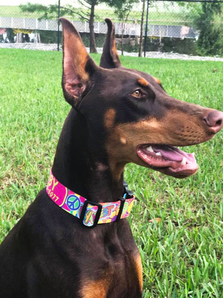 Wagadoodle's Custom Dyed Webbing is Handmade to Order in the USA for your pet's neck size, not massed produced overseas. Choose with the webbing width you want and the length closest to your dog's neck measurement. We will custom tailor the collar as we make it to get the best fit for your dog.
