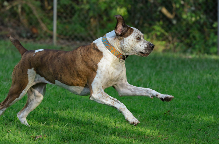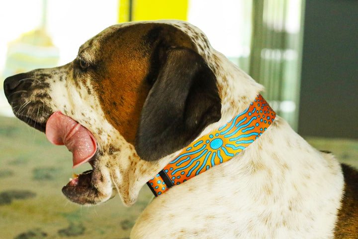 Wagadoodle's Custom Dyed Webbing is Handmade to Order in the USA for your pet's neck size, not massed produced overseas. Choose with the webbing width you want and the length closest to your dog's neck measurement. We will custom tailor the collar as we make it to get the best fit for your dog.