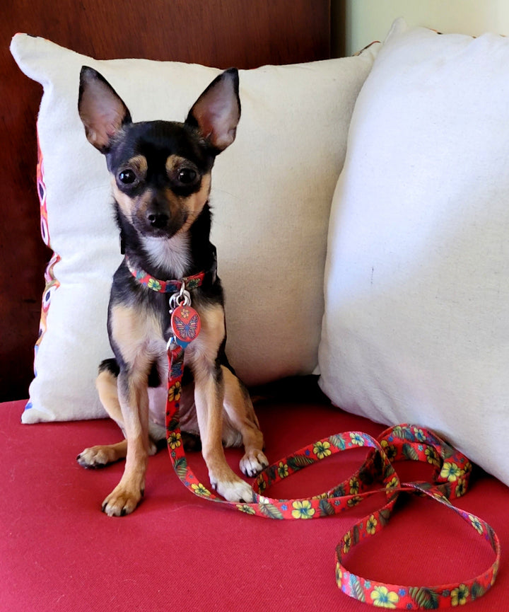 Hibiscus & Palm Fronds Red Personalized Dog Collar