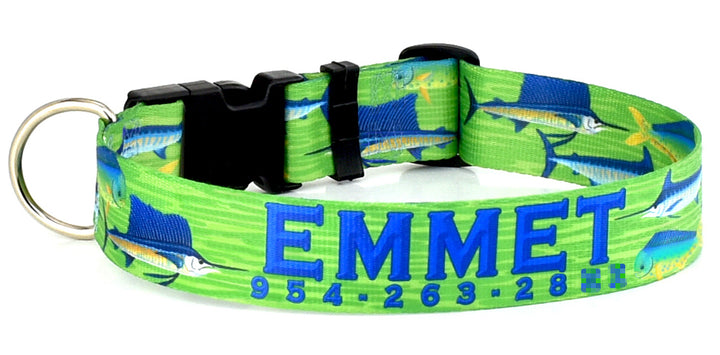 Mahi, Marlin and Sailfish Personalized Dog Collar Green
