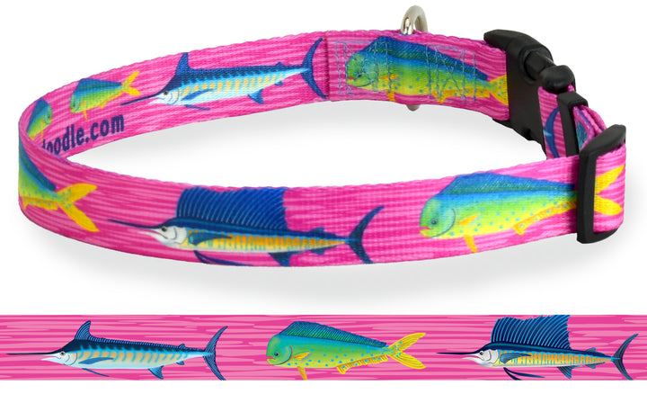 Mahi, Marlin and Sailfish Personalized Dog Collar Pink