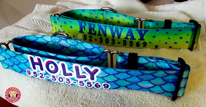 Mermaid Scales Teal Personalized Dog Collar
