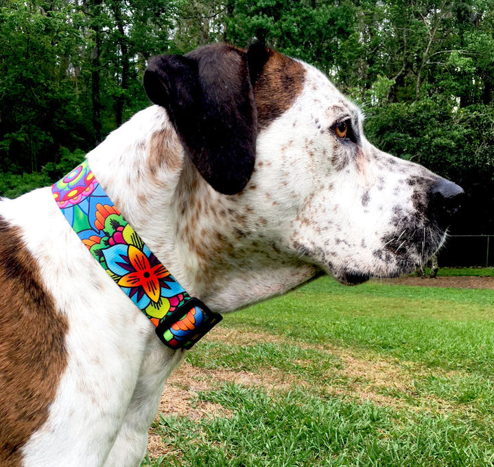 Wagadoodle's Custom Dyed Webbing is Handmade to Order in the USA for your pet's neck size, not massed produced overseas. Choose with the webbing width you want and the length closest to your dog's neck measurement. We will custom tailor the collar as we make it to get the best fit for your dog.