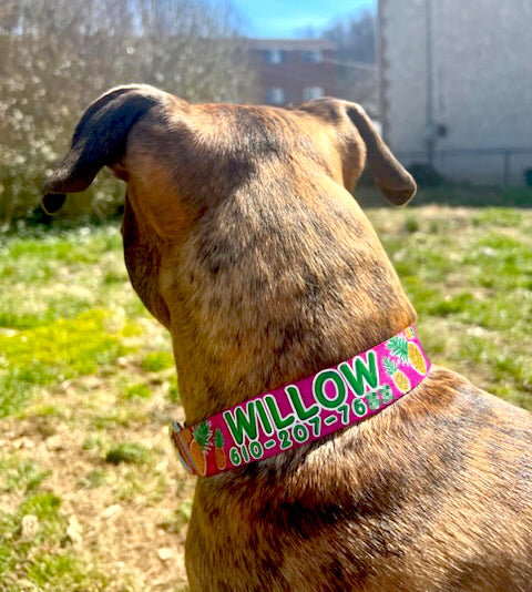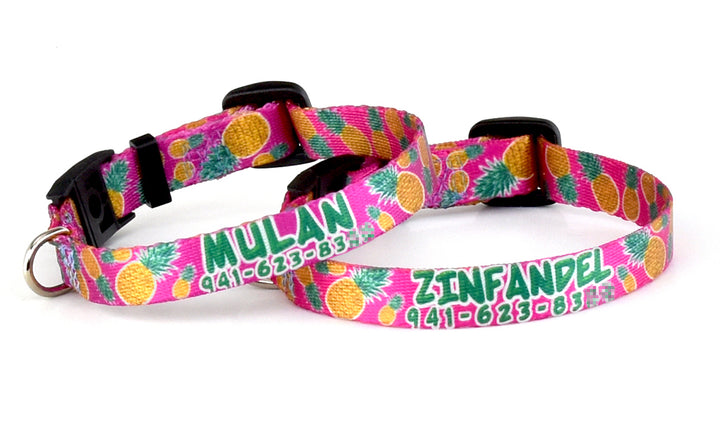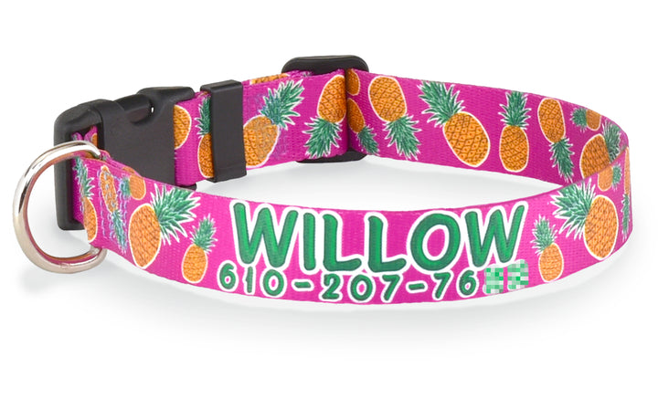 Personalized Pineapple Dog Collar on Pink background symbolize the Beach Life, Seashore & Salty Dog Lifestyle with this Festive Tropical Pineapple Dog Collar!