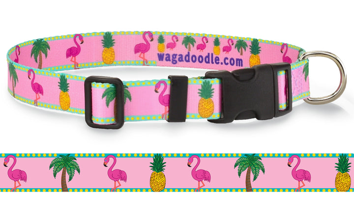 Pink Flamingos, Pineapples & Palm Trees on Pink Personalized Dog Collar