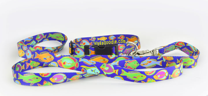 Tropical Reef Fish Blue Personalized Dog Collars.
