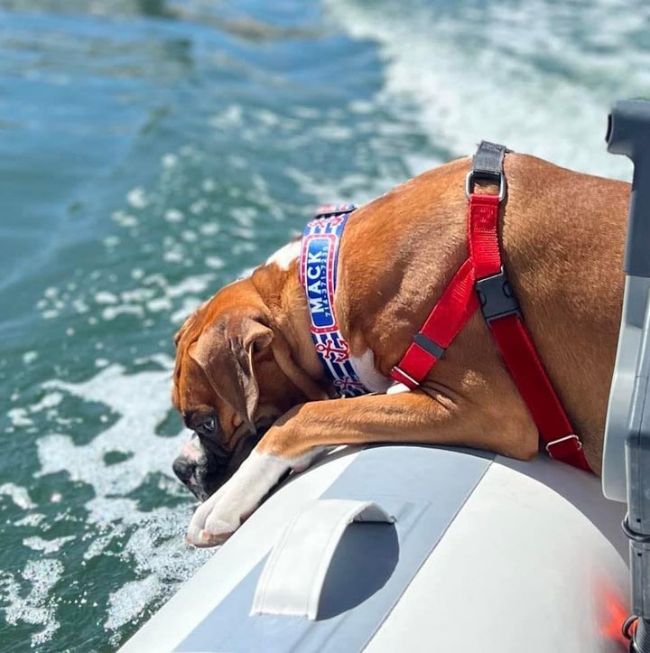 Custom Personalization is dyed into the webbing in with the artwork and many of our customer's dogs have worn them with heavy use, swimming in pools and the ocean for over 5 to 7 years while the colors remain bright and vibrant!  They can be washed with bleach and in a washing machine and hold the bold colors.