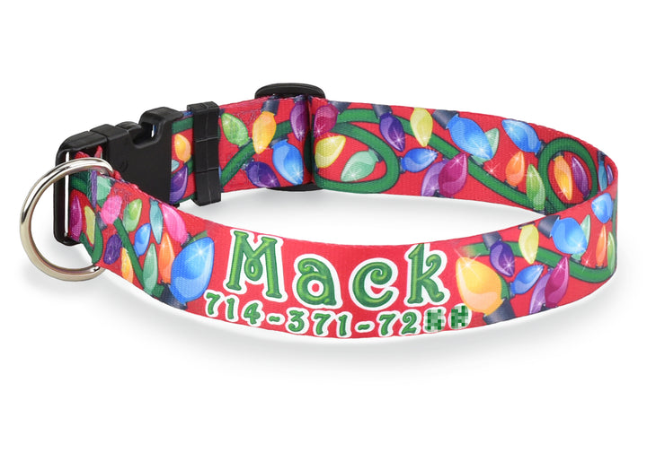 Festive Christmas Lights Personalized Dog Collar
