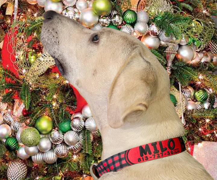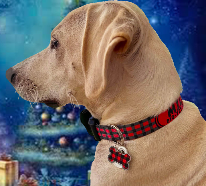 Christmas Buffalo Plaid Red Dog Collar Personalized