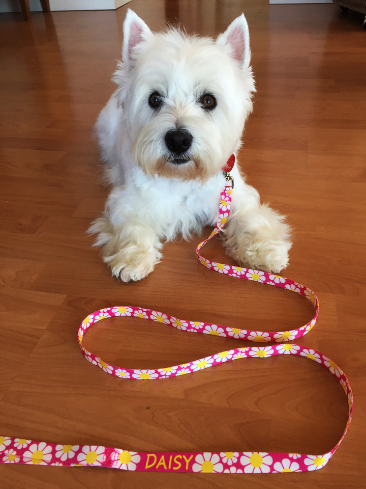 Daisy with Pink and Lime Personalized Dog Collar are hand made in Key West USA