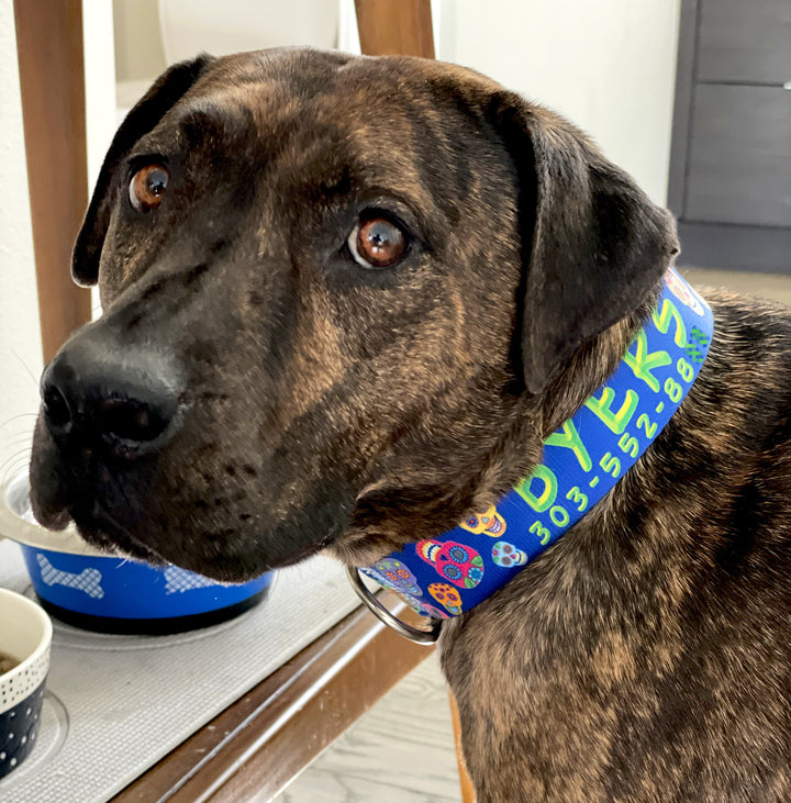 Day of the Dead Sugar Skulls Blue Personalized Dog Collar
