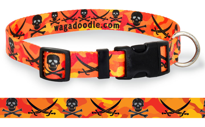 Skull & Crossbones Pirate Orange Camo Personalized Dog Collar